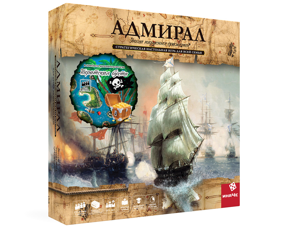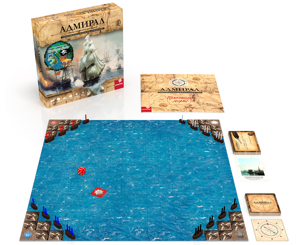 В настольной игре «АДМИРАЛ: эпоха парусных сражений» вы сможете возглавить эскадру парусных кораблей, почувствовать себя в роли великого русского флотоводца – Ушакова, Шмидта или Апраксина. Игроки здесь ведут артиллерийские сражения с противником или вступают в абордажный бой, пытаясь захватить вражеские корабли. Также в игре можно штурмовать крепости, вести бой линейной эскадрой и многое другое.