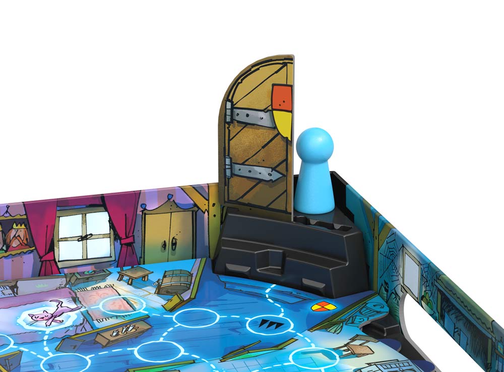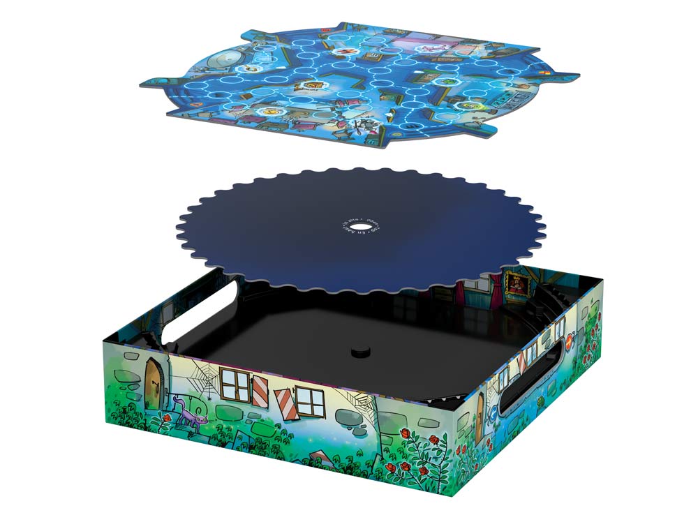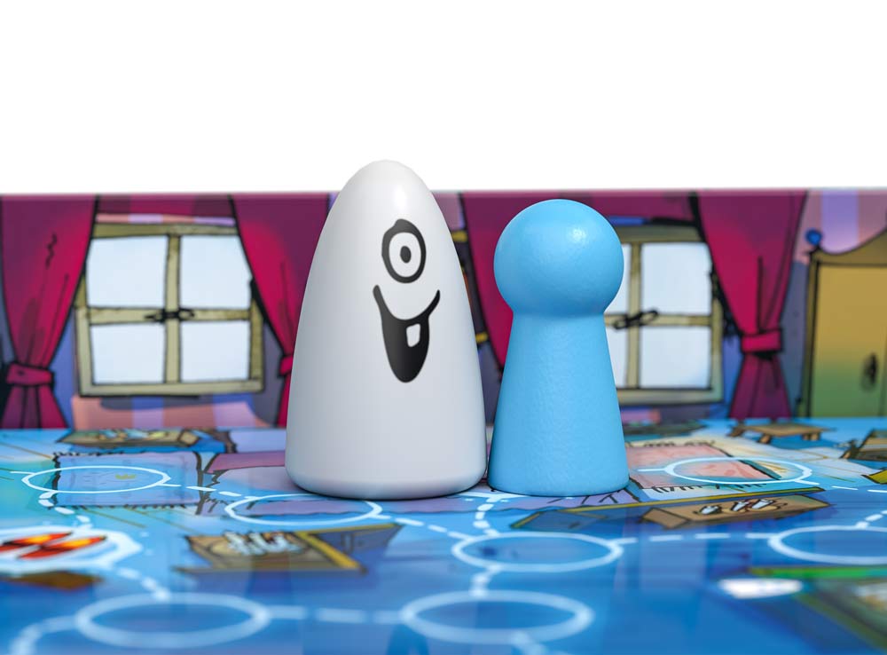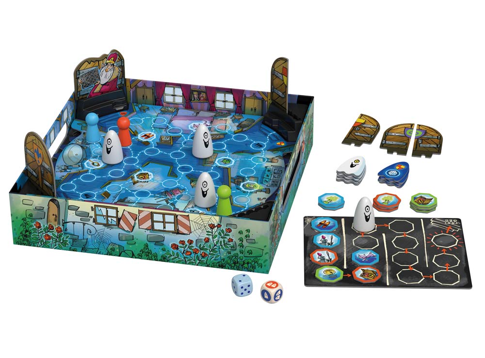 - Бросайте два кубика — голубой для движения магов, кубик призраков для вращения колеса