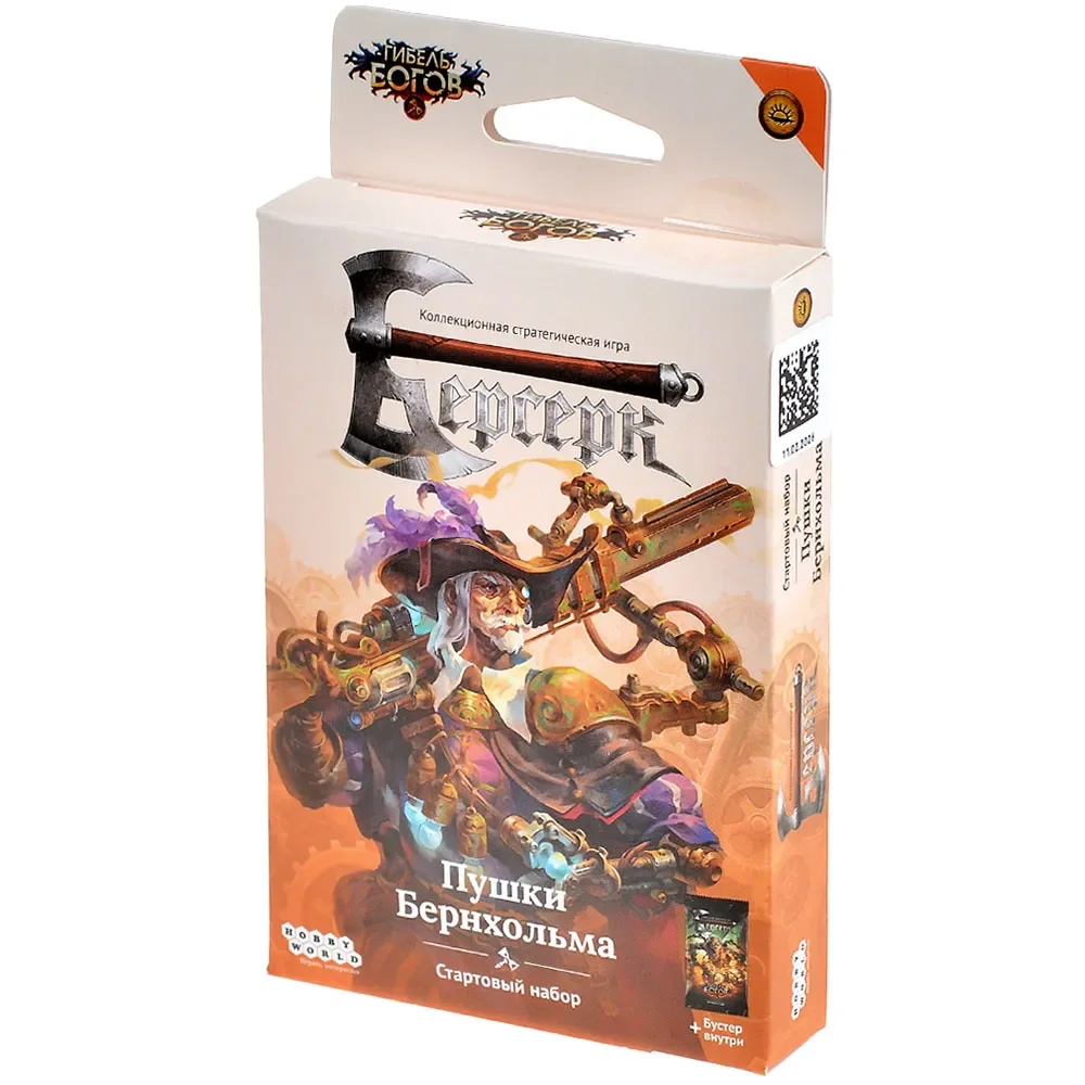 «Берсерк. Гибель богов. Стартовый набор “Пушки Бернхольма”» — стартовая колода для сета «Гибель богов», созданная для быстрого входа в обновлённый «Берсерк» и комфортных дуэлей «из коробки». Серия «Гибель богов» продолжает масштабную историю: части Молота времени собраны, но даже мастерство Хигарта и гномьих кузнецов не позволяет сковать оружие, которого достаточно, чтобы низвергнуть Ложных богов. Мир ищет спасения в безумных изобретениях и новых союзах, а на передовой оказываются боевые машины и артиллерия Бернхольма, задающие тон этому набору.