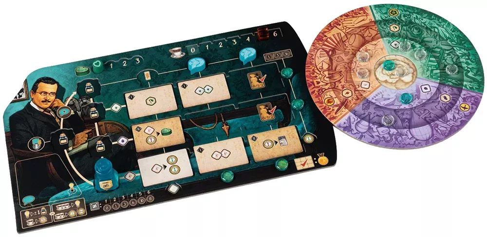 В основе игры лежит сочетание размещения рабочих, построения движка и программирования действий. Идеи и концепции представлены в виде жетонов и треков, которые вы размещаете на общем «столе встреч», выбирая, какие направления развития и терапевтические техники будете осваивать. На личном планшете игрока расположен рондель с чернильницей: продвигая её по кругу, вы запускаете цепочки эффектов, усиливая свои действия и открывая новые способы взаимодействия с пациентами.