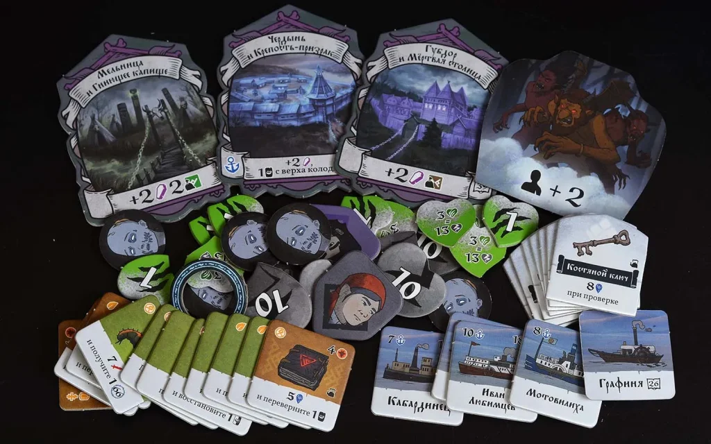 • Планшеты историй, рынка и персонажей, а также набор жетонов предметов, проклятий и ядовитых ран для интеграции с базой.