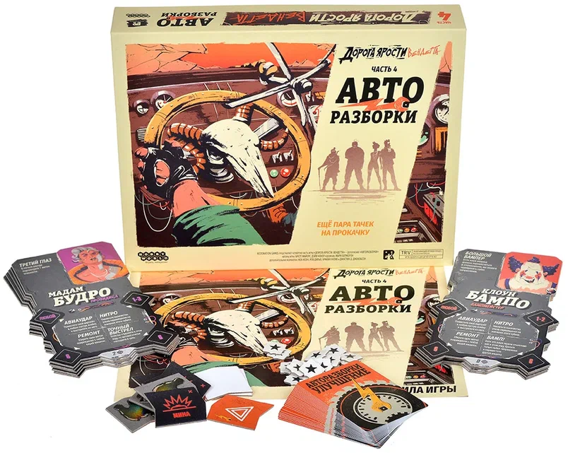 Важно помнить, что это именно дополнение: для игры требуется базовая «Дорога ярости: Вендетта». Новые планшеты главарей, жетоны и карты улучшений не заменяют собой существующие элементы, а накладываются поверх, усиливая вариативность и реиграбельность. Для тех, кто уже провёл множество гонок по стандартным правилам и хочет вывести их на новый уровень асимметрии и персонализации, «Авторазборки» становятся естественным и очень тематичным шагом вперёд.