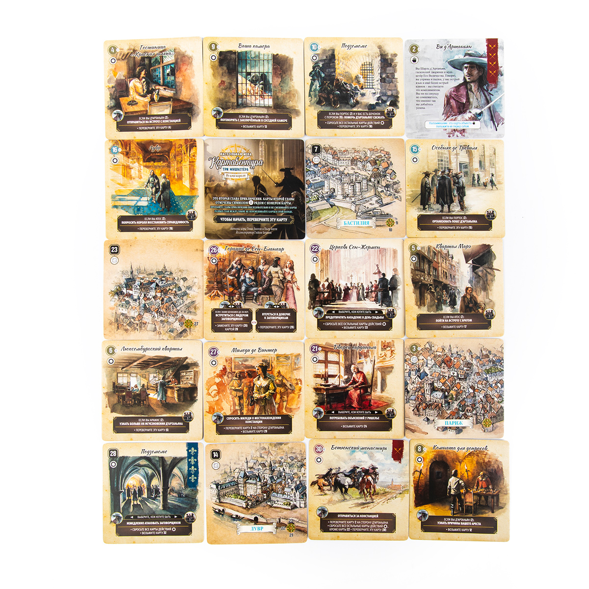 70 квадратных карт с иллюстрациями, текстом сцен и указаниями переходов