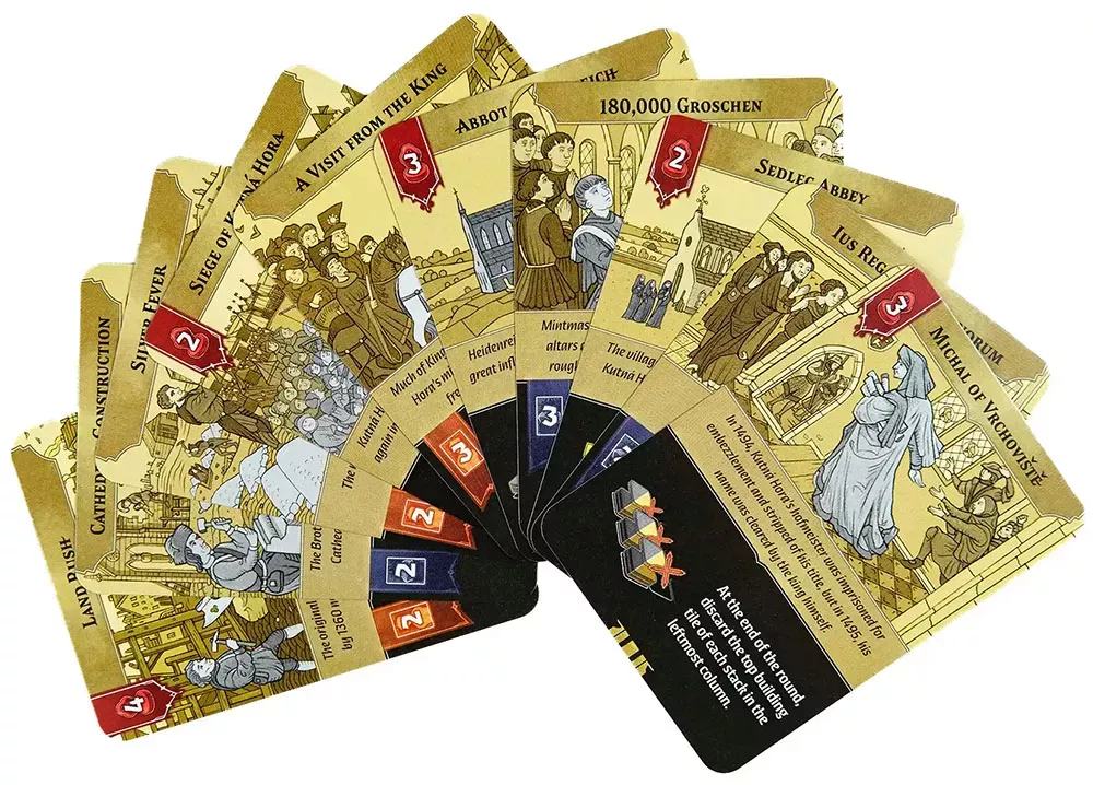 Отдельный пласт игры – участие в строительстве Собора святой Варвары. Игроки могут вкладываться в разные части собора, получая престиж и очки, но для этого нужна серьёзная экономическая база: каждая часть требует ресурсов и времени. Баланс между «служебными» зданиями для дохода, инфраструктурой гильдий и вкладом в собор становится одним из центральных вопросов стратегии.