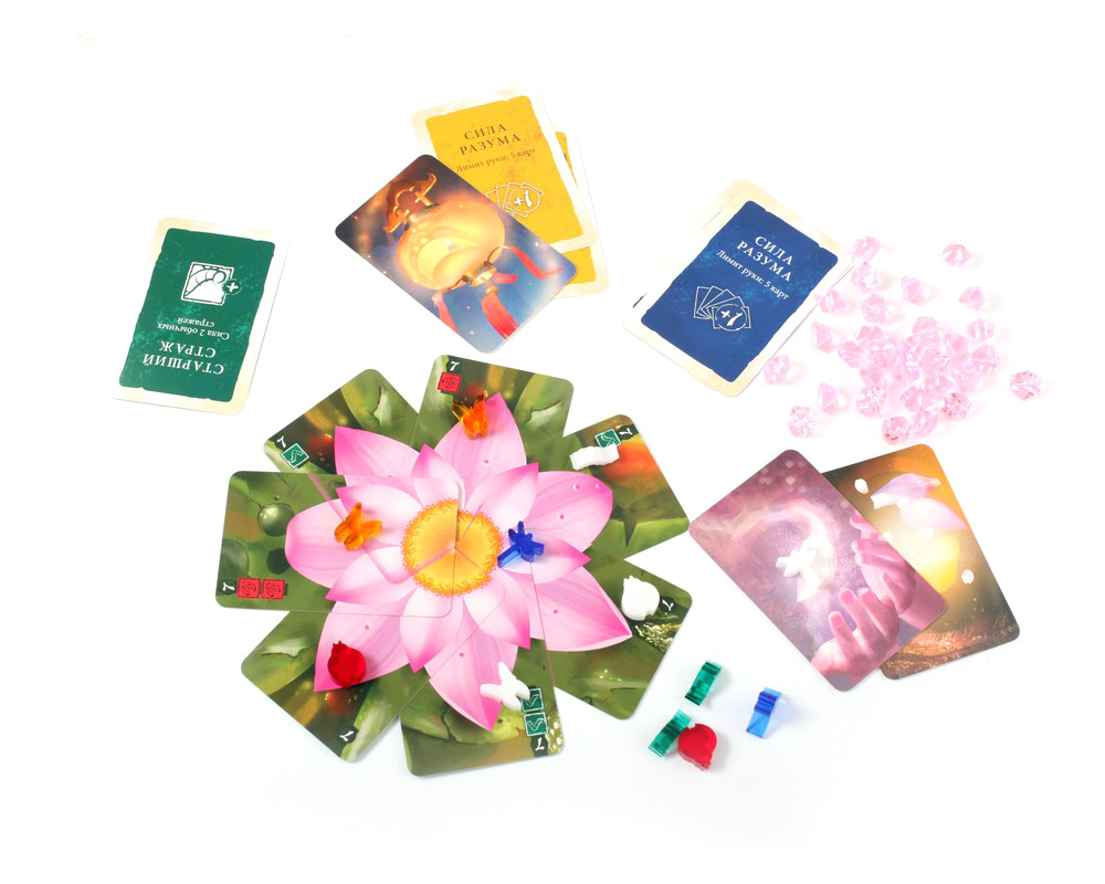 «Лотос» – это невероятно красивая настольная игра для 2-4 игроков, в которой вам предстоит выращивать самые разные цветы – от простых первоцветов до роскошных лотосов. Выкладывайте карты лепестков, завершая чудесные цветы. Мудро используйте своих стражей-насекомых, чтобы заработать победные очки. Выбирайте, когда лучше получить контроль над цветком, а когда – первым сорвать его… Верная тактика принесёт вам большую награду и победу в игре!