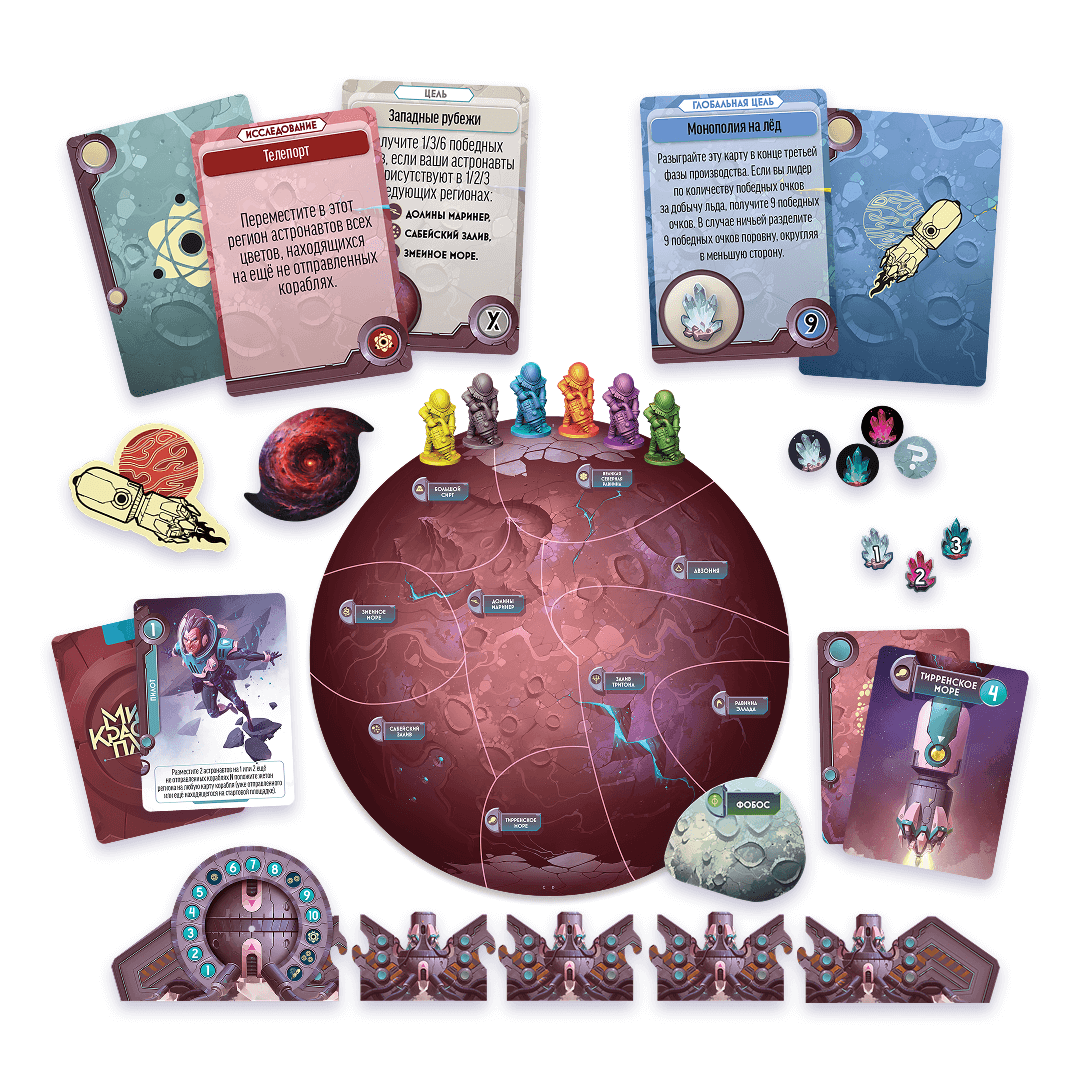 Каждый раунд разделен на две захватывающие фазы. На Земле вы одновременно с соперниками выбираете карты персонажей, которые определяют ваши действия в этом ходу — от ускорения посадки до саботажа чужих кораблей. На Марсе ваши астронавты добывают ресурсы и захватывают контроль над богатейшими секторами планеты.