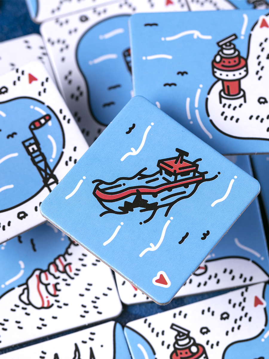 6 деревянных фишек — фигурки кораблей и, при необходимости, специальные маркеры для некоторых эффектов (например, ветрогенераторов).