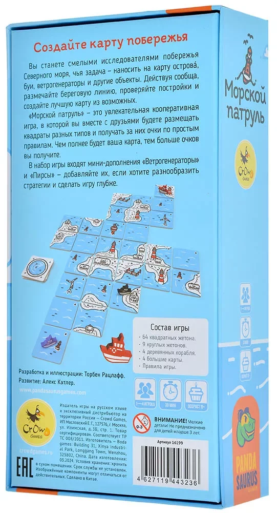«Морской патруль» – кооперативная настольная игра, в которой вы становитесь капитанами береговой охраны и вместе исследуете побережье Северного моря. Свежий ветер, мерцающие маяки и сигнальные буи – не просто декорации, а ключевые ориентиры, которые нужно проверить, прежде чем суда отправятся в путь. Задача команды – за ограниченное число ходов составить как можно более полную и безопасную карту акватории, не оставив непроверенных участков.​