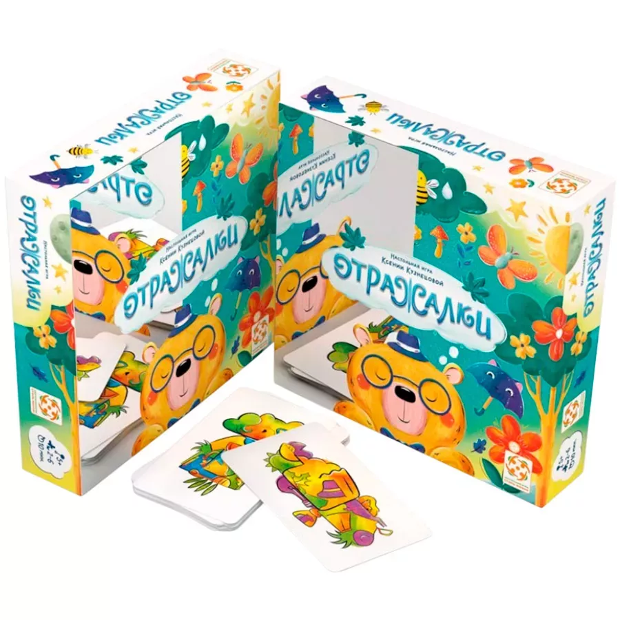 «Отражалки» — развивающая детская игра на внимание и пространственное мышление, где обычные картинки превращаются в загадки, а полузакорючки и дуги — в целые предметы благодаря зеркалу. В центре внимания — необычные иллюстрации, состоящие из фрагментов, за которыми прячутся силуэты животных, растений, предметов и других знакомых образов. Задача игроков — первыми отыскать нужные объекты, мысленно дорисовывая вторую половину рисунка и используя зеркальную карточку как волшебный инструмент.