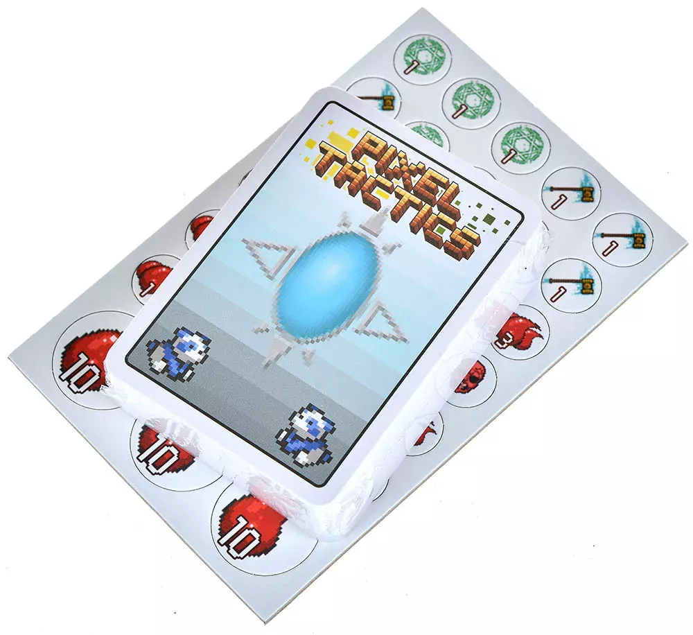 При этом по времени «Пиксель Тактикс: Легенды» остаётся довольно компактной. Средняя партия занимает около 30 минут, а за счёт симметричных колод и огромного количества лидеров (50 вариантов) реиграбельность очень высокая: каждая комбинация лидера и построение отряда ощущаются по‑новому. Коробка удобного небольшого формата, поэтому игру легко брать с собой и играть сериями дуэлей.