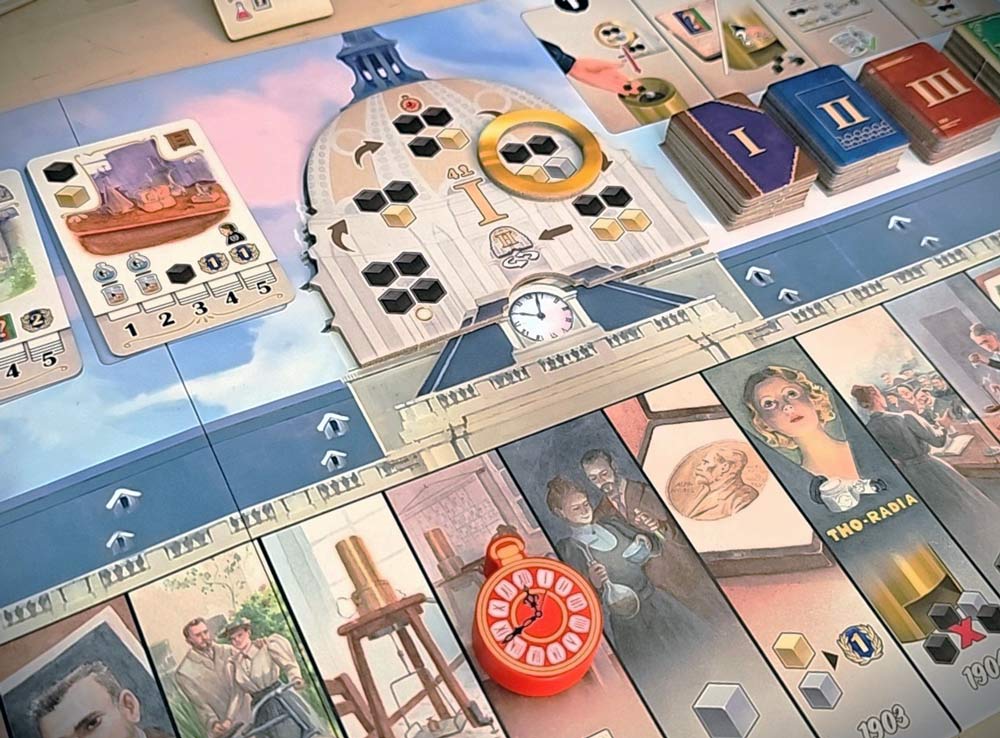 Игра продолжается до тех пор, пока маркер времени не достигнет конца линии жизни Марии Кюри. Побеждает исследователь, набравший наибольшее количество победных очков за проведённые эксперименты и научные достижения.