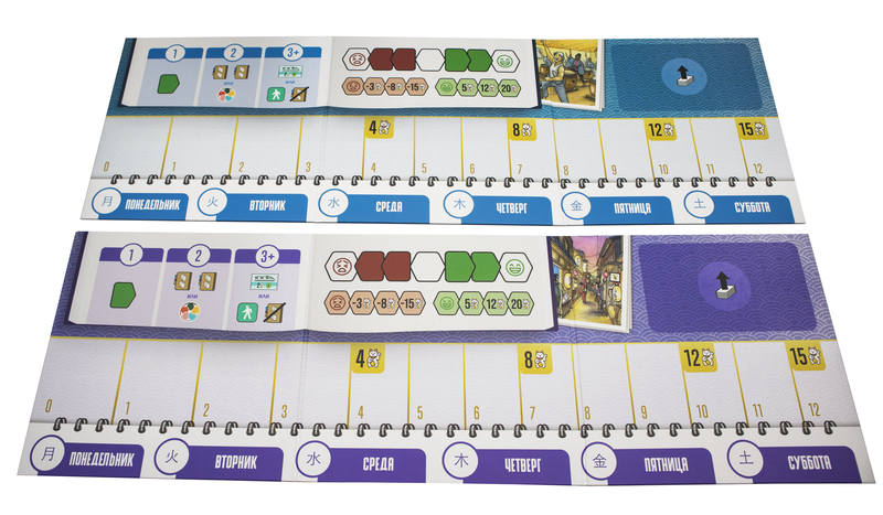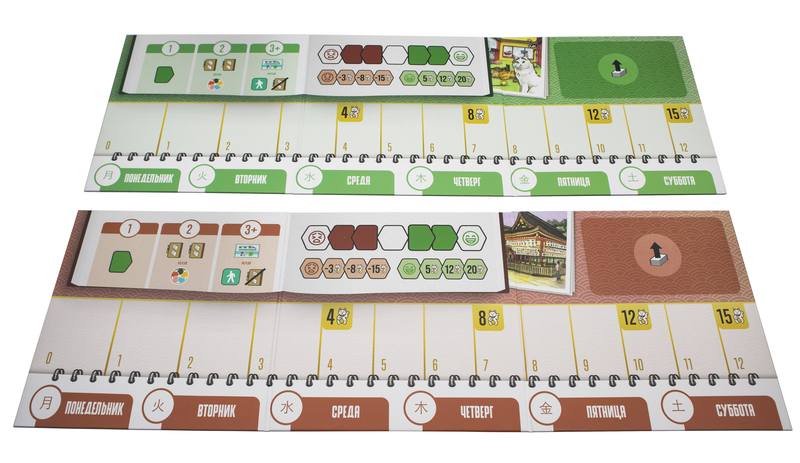 После фазы планирования начинается самое приятное — реализация маршрута. В финальном раунде вы «отправляетесь» в Японию и по порядку активируете все свои карты, день за днём проживая запланированный отпуск. Каждый визит в кафе, храм или на смотровую площадку приносит очки, бонусы и комбинации, а также может неожиданно изменить ваши планы, если вы слишком перегрузили день событиями.