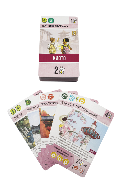 Важной частью удовольствия от игры становится визуальная сторона. В коробке вас ждут 160 иллюстрированных карт, созданных японскими художниками: на них изображены достопримечательности Токио и Киото, типичные сцены городской жизни, блюда, фестивали и уютные уголки, которые хочется посетить в реальной поездке. Каждая карта не только даёт игровой эффект, но и помогает почувствовать атмосферу странствия по Японии.