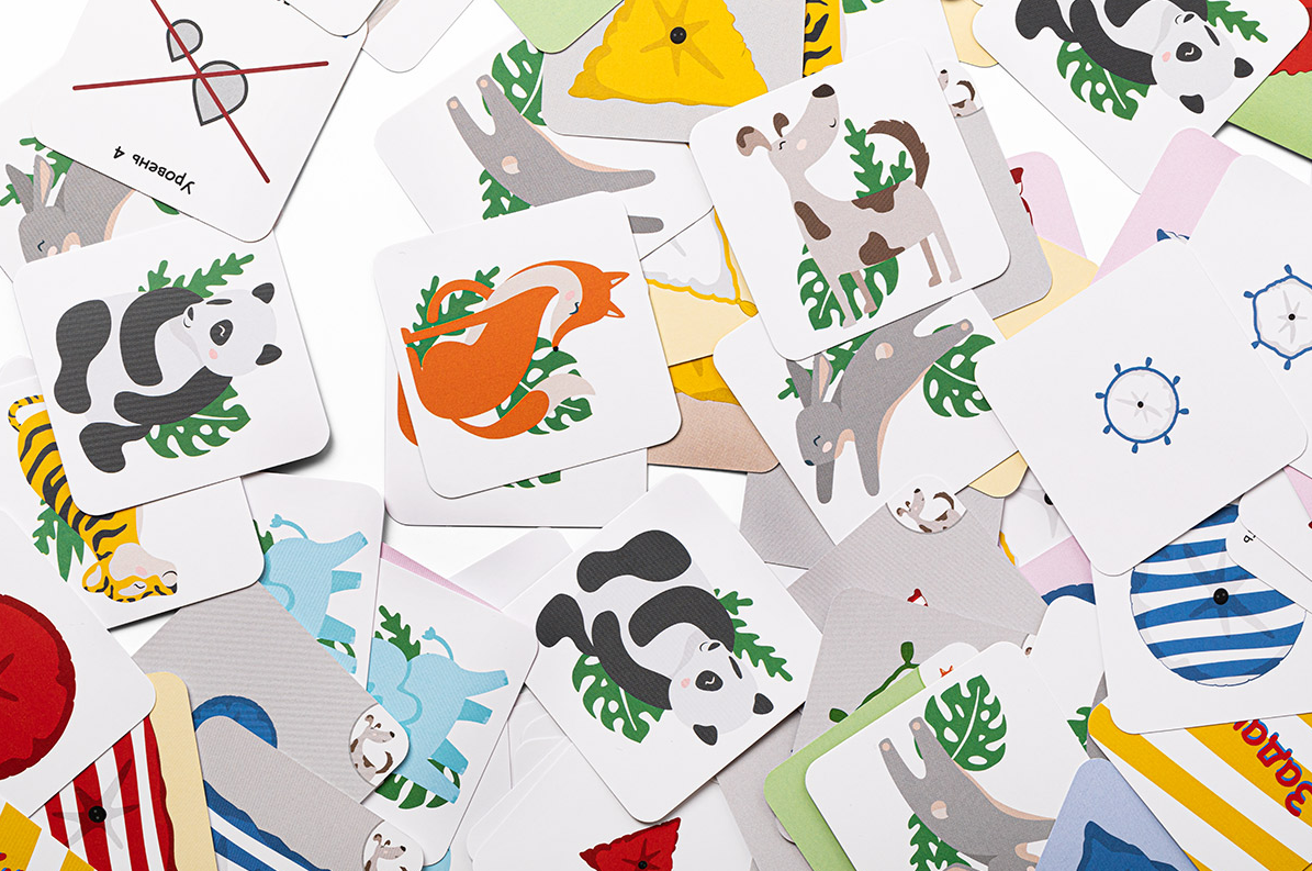 4. Игроки одновременно накрывают подходящие по заданию подушки на поле своими карточками. Кто накроет больше всех подушек?!
