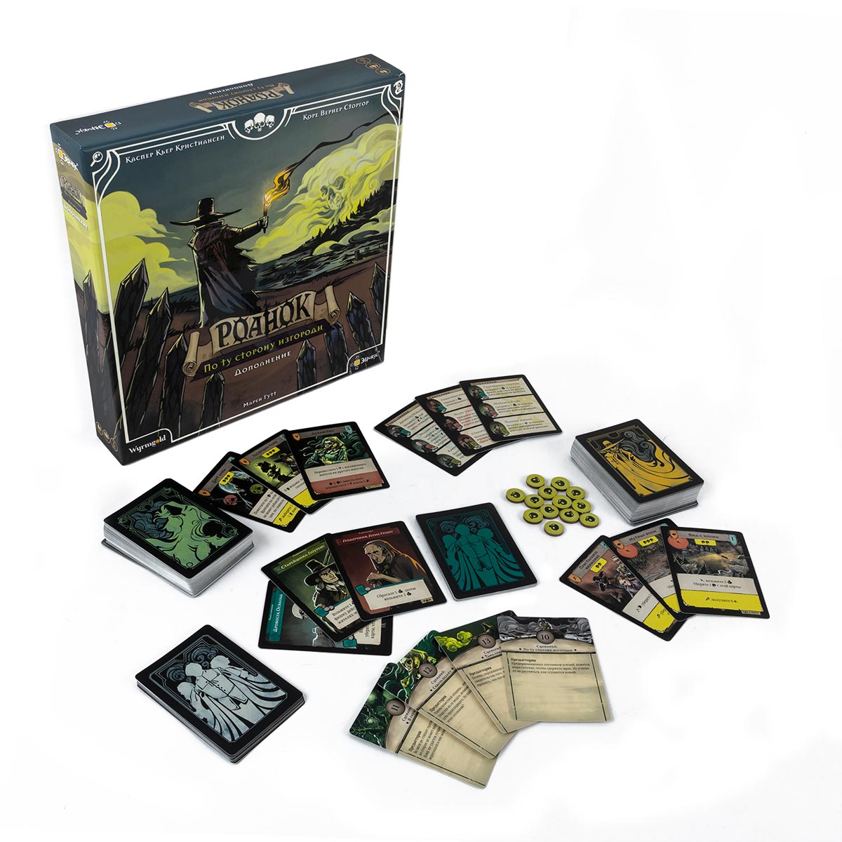 Важно помнить, что «Роанок: По ту сторону изгороди» не является самостоятельной игрой. Для использования всех компонентов необходима базовая коробка «Роанок: Охота на ведьм». Правила дополнения встроены в основную систему: вы играете по знакомым базовым правилам, добавляя новые символы, жетоны мрака, эффекты очищения и дополнительные карты в свои колоды.