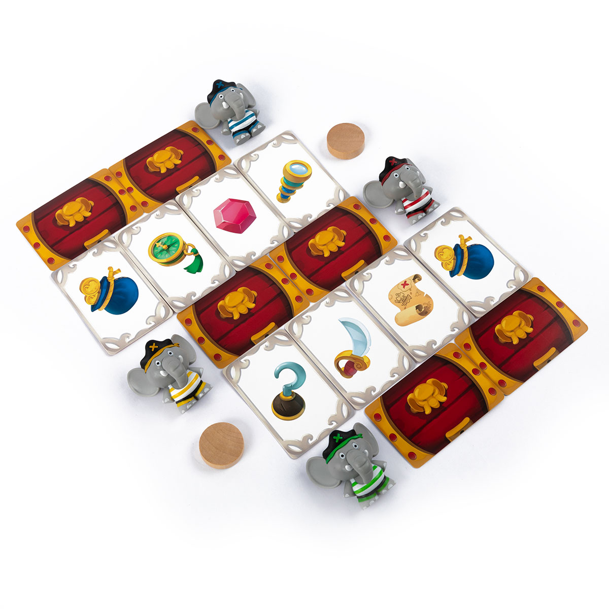 Секрет напряжения в том, что каждый удачный ход усиливает давление на соперников: за каждое уникальное сокровище они вынуждены выкладывать на свою доску один тяжёлый ящик. Чем больше ящиков на доске, тем быстрее она наклоняется – особенно когда слон подходит всё ближе к концу. Игроки постоянно балансируют между жадностью и осторожностью: остановиться сейчас и немного ослабить противников или рискнуть ради серии из пяти–шести разных сокровищ, которая буквально засыпает их доски ящиками.