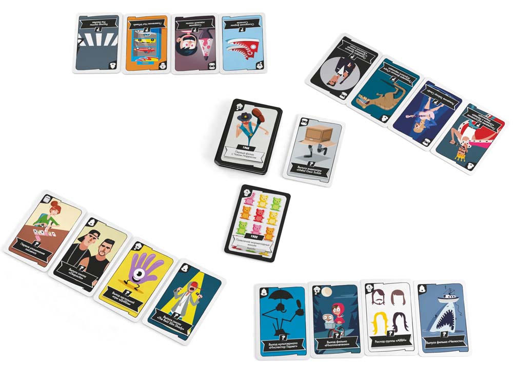 Сюжет — путешествие по кинематографу: от немого кино до супергероев. Каждый держит 6 карт лицом вниз, по очереди угадывает место в общей ленте. Верно — карта остаётся, ошибка — все берут карты обратно. Первый без карт побеждает; узнаёте факты на ходу, спорите о хитах. Совместима с другими версиями «Таймлайн» для мега-таймлайнов.