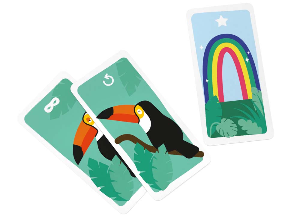 Сюжет тропический: туканы изнывают от жары, фрукты манят, но нужны конкретные. Разложите 70 карт в пирамиду или ряды, каждый ход берите карты по правилам набора (цвет, тип, количество). Совпадения дают очки: полный набор — бонус, одиночные — меньше. Пока не кончится колода, планируйте: длинные комбо или быстрые очки? Победитель — с наибольшим счётом, партии реваншевые.