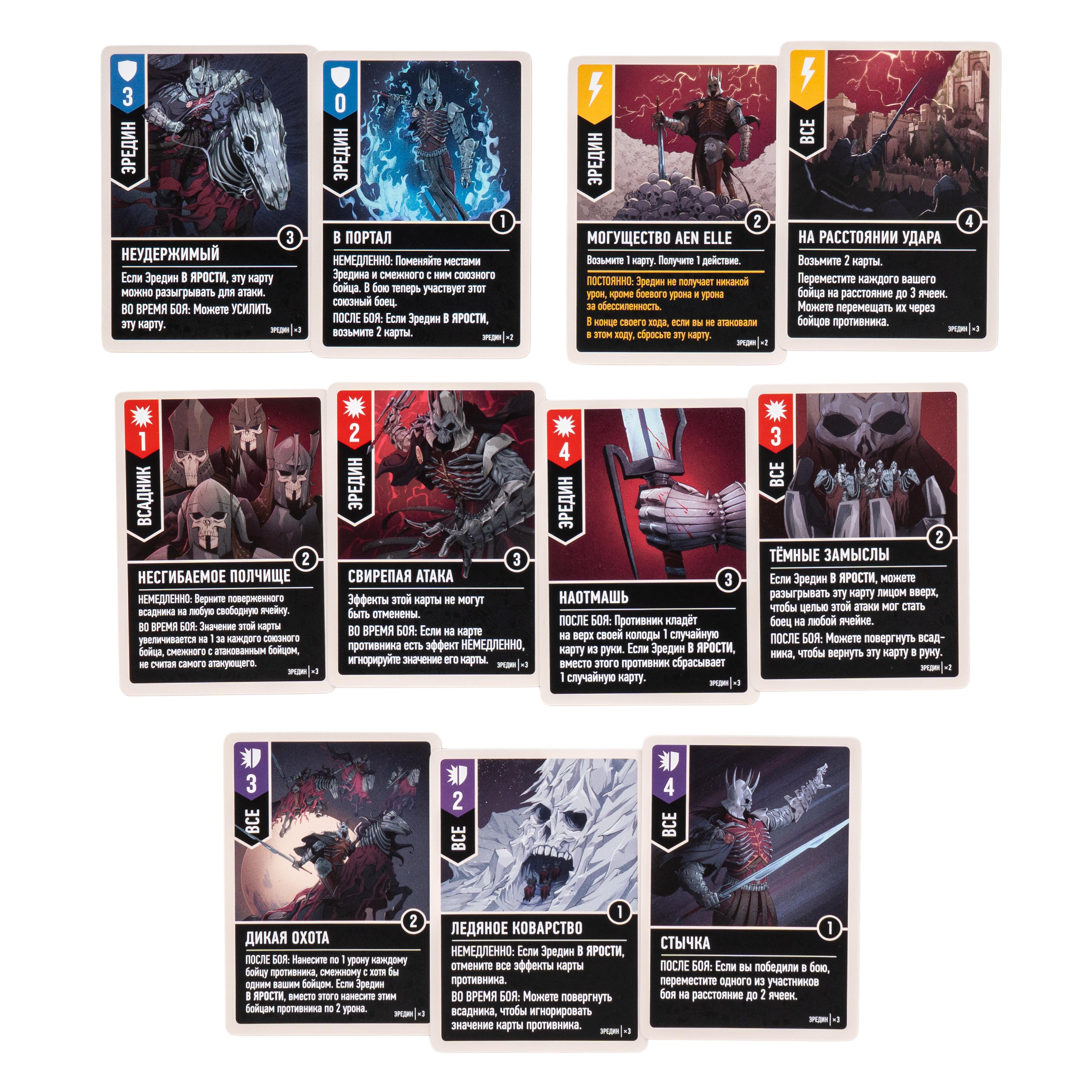 Эредин, Король Дикой Охоты — его ярость не знает границ. В бою его сопровождают Красные Всадники. Когда они падают, Эредин впадает в ярость: его перемещение и урон растут, а карты усиливаются. Его постоянный приём «Могущество Aen Elle» делает его неуязвимым к магическому урону, пока он атакует каждый ход. Всадники могут восставать из мёртвых, делая его армию поистине неистощимой.