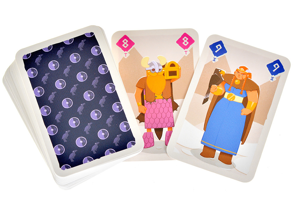 Стратегия в комбо: низкие номера для быстрых сетов, высокие — для мощных ходов. Нет кубиков — чистый расчёт и память. Подходит новичкам: объясняется за минуту, викинги мотивируют детей.
