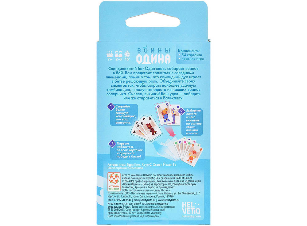 Сюжет эпический: Один требует битвы, викинги делят территории. Каждый начинает с рукой карт-викингов (номиналы 1–9), цель — сбросить все первым, минимизируя штрафные очки за остаток. Ход: играйте карты в комбинации (пары, последовательности, сеты), блокируйте оппонентов или усиливайте свой отряд. Первый без карт побеждает раунд, очки по штрафам определяют финал. Простые правила с тактикой — как покер, но быстрее.