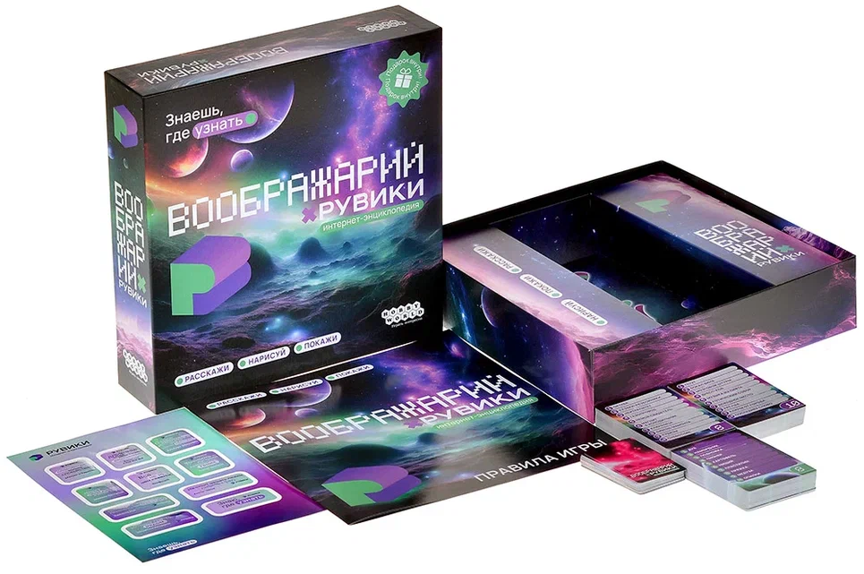 «Воображарий: Рувики» — самостоятельная настольная игра из популярной серии «Воображарий», в которой участники соревнуются в умении объяснять слова и быстро угадывать ассоциации. Это динамичная игра для 3–9 человек от 10 лет, рассчитанная примерно на 30 минут и идеально подходящая для семейных вечеров, встреч с друзьями и неформальных компаний.​