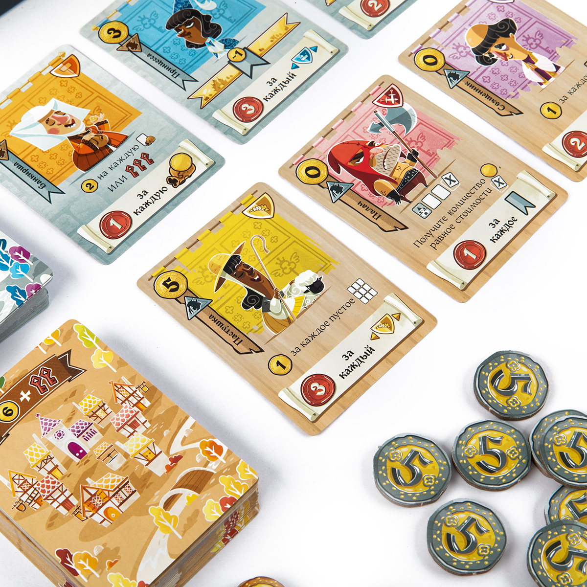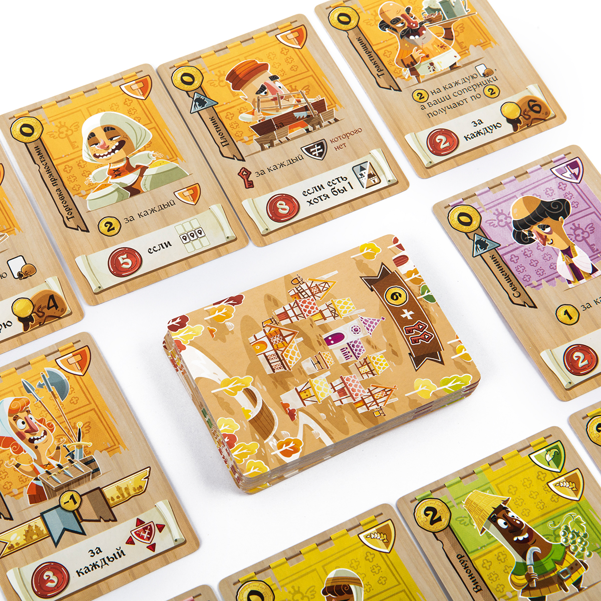 • 78 карт персонажей (замок и деревня) – у каждой уникальные эффекты и условия начисления очков.