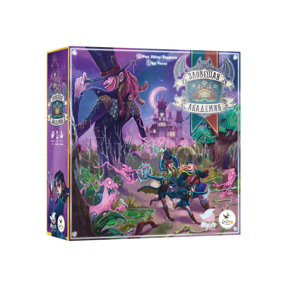 «Зловещая академия» – кооперативная настольная игра‑приключение, в которой вы становитесь студентами школы магии, построенной прямо посреди проклятого болота. Казалось, это отличное место для изучения заклинаний, пока в окрестностях не появился Злобный Чародей с отрядом приспешников и планом уничтожить академию. Учителей рядом нет, и только ученики могут спасти родную школу, собрав магические артефакты, проводя ритуалы и шаг за шагом ослабляя врага, пока не иссякнет колода событий.